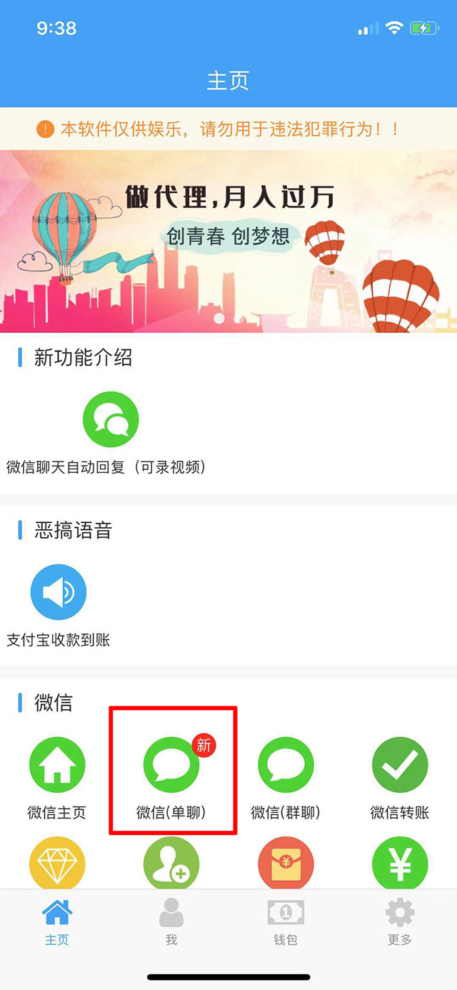 1.打开微截图软件首页,选择微信对话生成器单聊