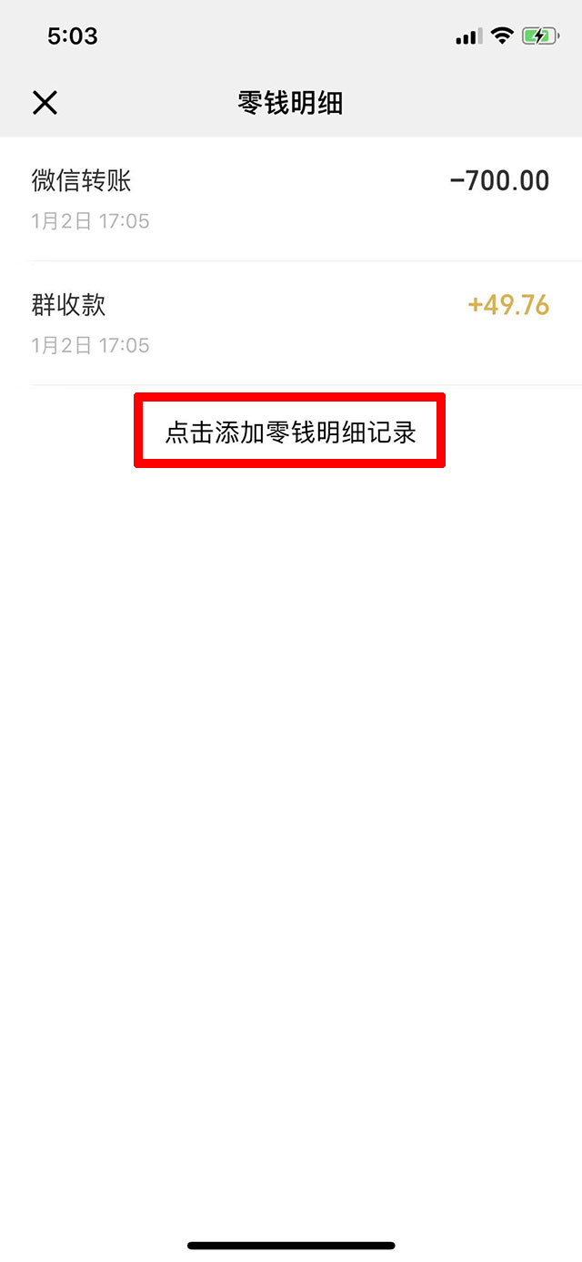 4.输入微信零钱明细记录的信息,然后点击添加按钮