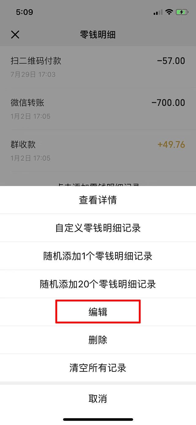 5.如果要修改添加后的记录,可以长按该记录,选择编辑
